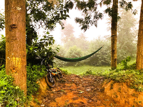 Riding as hard as you can until sunset catches you, wherever you are. Sometimes that means a rudimentary hotel, or a cozy jungle nook.